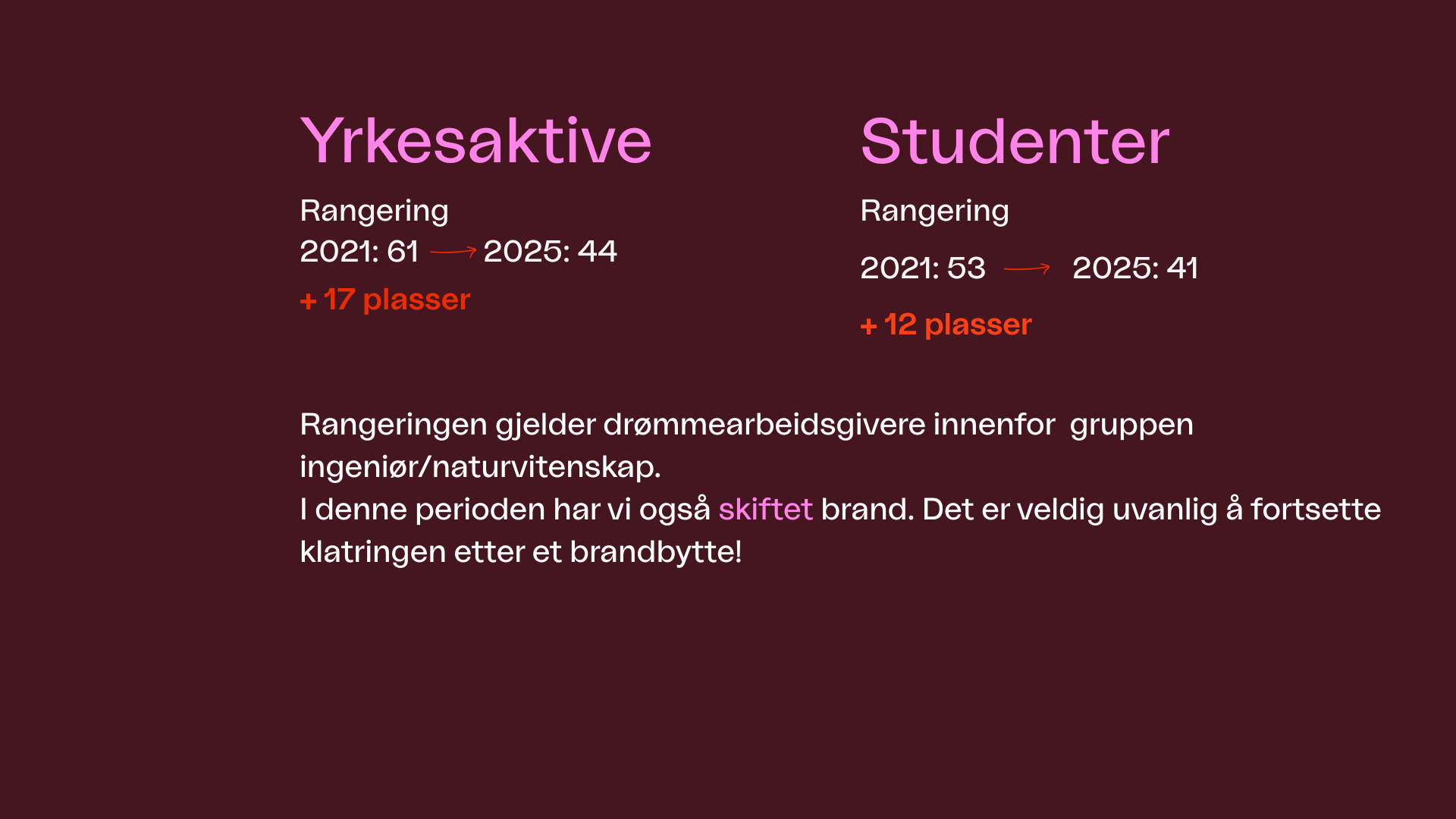 - Nr. 41 blant ingeniørstudenter (opp fra 44 i fjor)