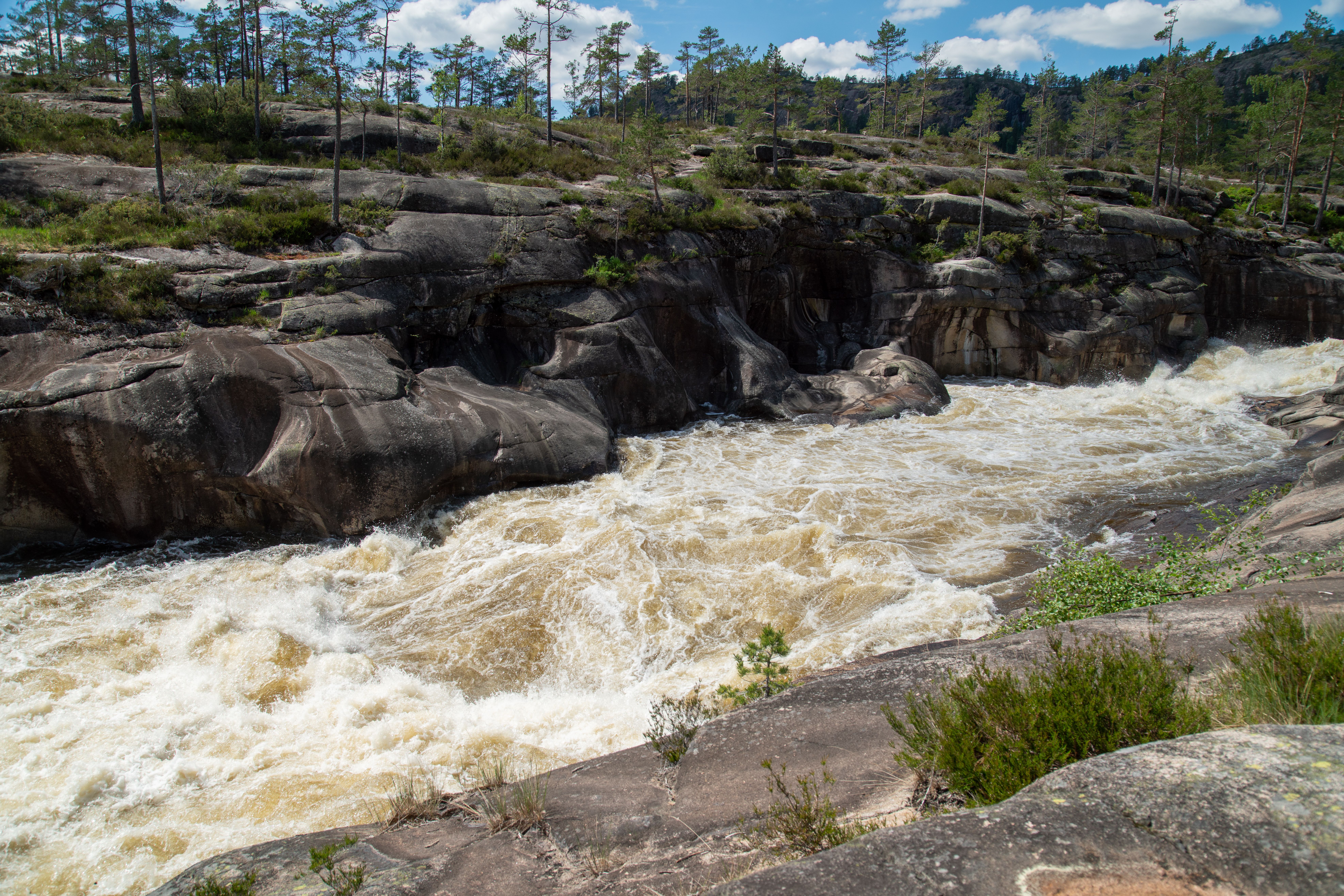Filmene viser høy vannføring ved Bjønnespranget og Geiteskarbru